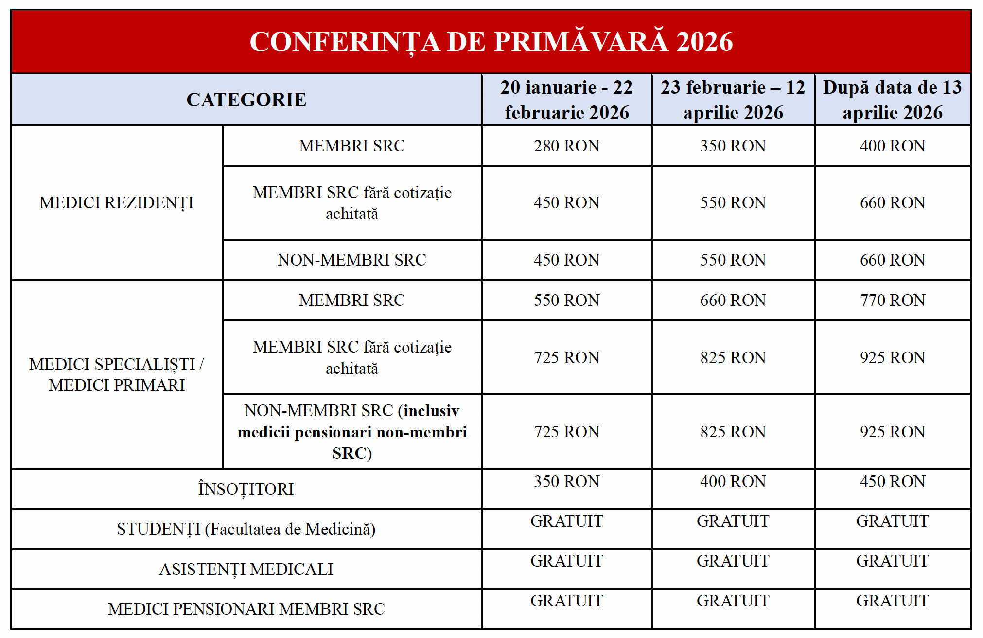 Vă invităm să vă înscrieți la Conferința de Primăvară a Societății Române de Cardiologie ce va avea loc la Sibiu, în perioada 20-23 mai 2026.
